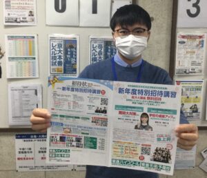 今日明日はとうとう共通テスト本番です!昨日は激励会を行い、スタッフから注意事項などの最終チェックや受験生に向けてエールを送りました。