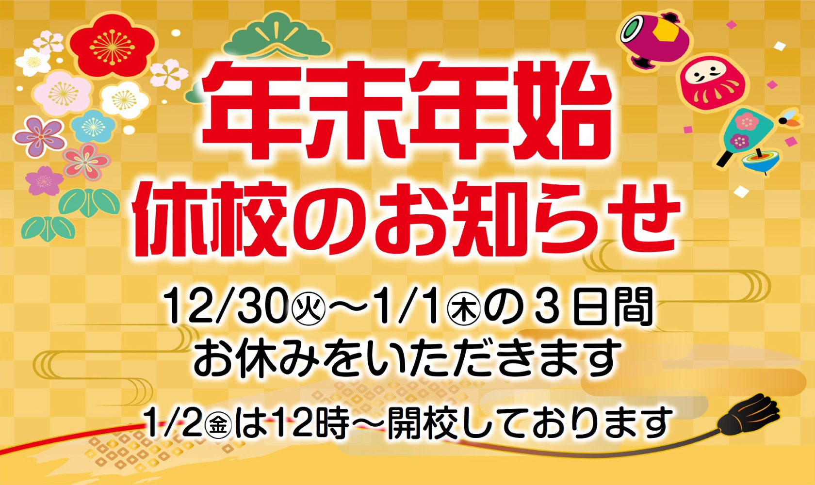 また、1/2(金)・1/3(土)は、校舎の開校時間を一部変更しております。詳しくは各校舎にてご案内いたします。