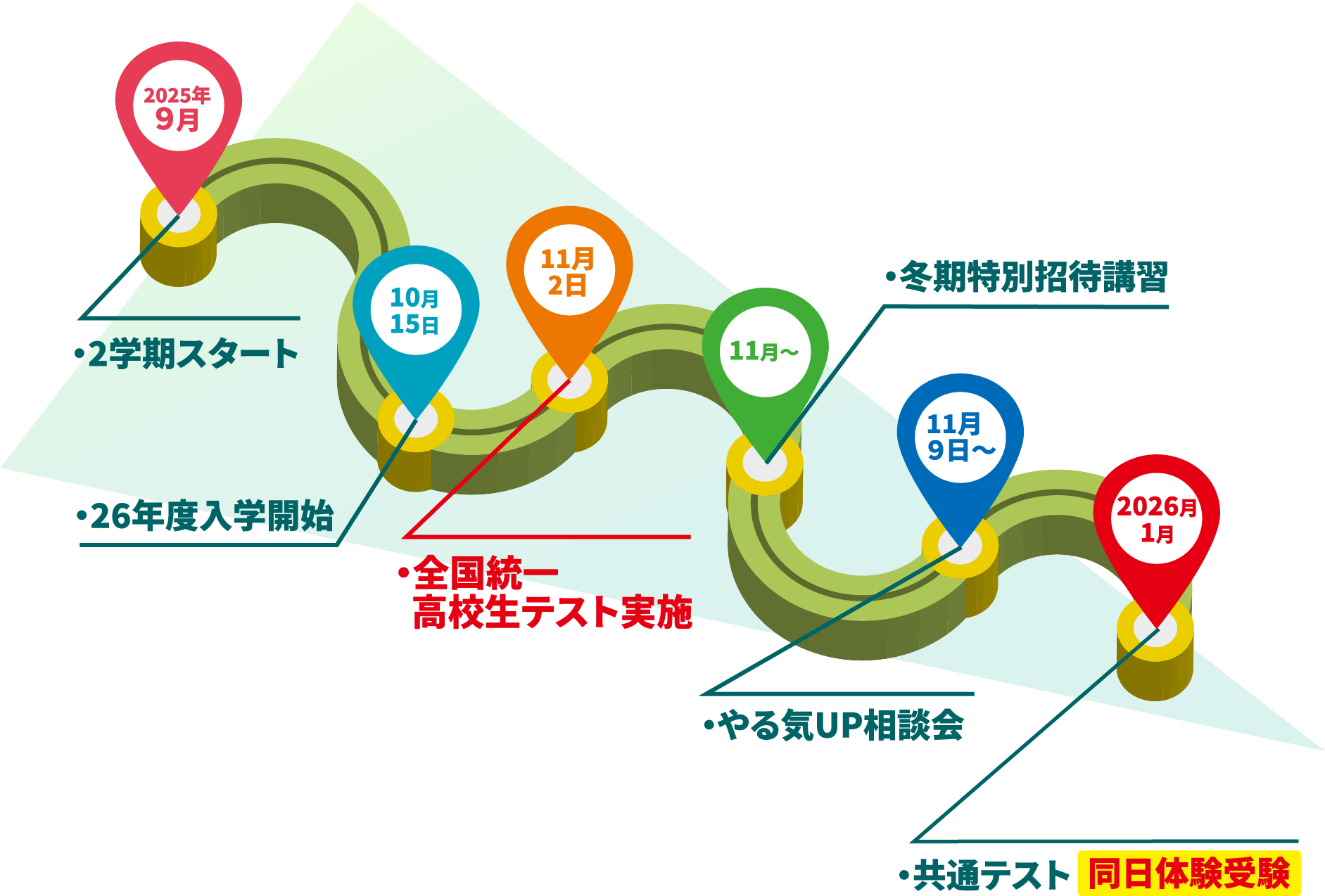 高2の10月・12月・1月・2月、高3の4月・6月・8月・10月・12月の9回の共通テスト本番レベル模試を受験した生徒
